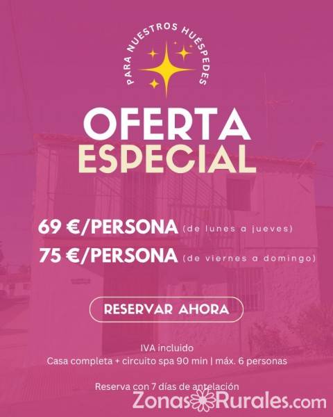 Capacidad: 6+1 plazasEl precio varia desde 40 euros por persona y noche, y dependiendo de la temporada desde 300 euros de lunes a domingo, 350 euros viernes y sábados, dependiendo de si son 6/7 personas con un mínimo de 2 noches.