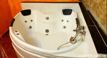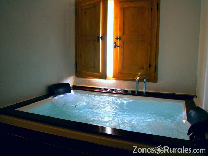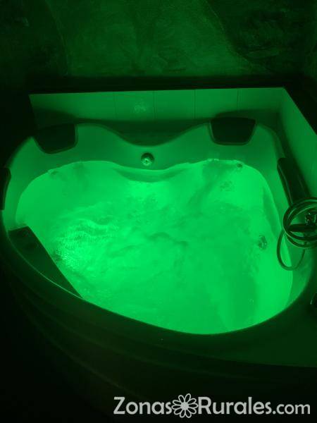Casa rural con jacuzzi en la habitación , casa con dos jacuzzis,  uno de de 2m por 1,4m y otro de esquina 1,5m por 1,5m, casa rural  ideal para que dos parejas disfruten de la casa con total intimidad de los jacuzzis todo el tiempo sin compartir. y resulte la estancia más barata. Toda la casa  tiene mucha luz natural ya que es toda exterior con múltiples ventanas, incluso una de las habitaciones tiene salida a la terraza donde hay billar, hockey y ping pong.