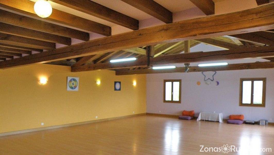 Casa Binahia, dispone de una gran sala multiusos de 100 m2 sin columnas, con estructura de roble, suelo de tarima flotante y sistema de calefacción radiante por todo el suelo de la sala.