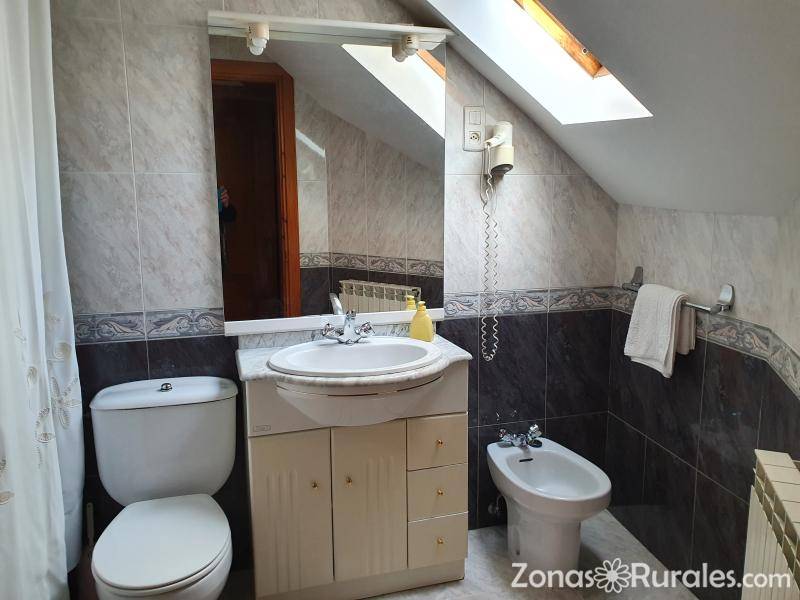 En la planta baja encontramos la habitacion principal con cama de matrimonio y cuarto de baño con ducha, salon comedor con TV, cocina equipada con vitrocerámia, microondas, frigorífico y lavadora. También encontramos una terraza grande amueblada que da a la calle principal. La segunda planta es toda abuhardillada y hay una habitacion con dos camas de 1.05m, y otra con dos camas de 90 cm. Armario con lavadora y enseres de limpieza, y cuarto de baño con bañera y secador de pelo.