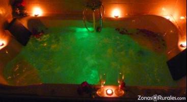 Tiene 2  baños con jacuzzi en cada uno de ellos, uno de ellos con cromatoterapia de 2m por 1,25m agua-aire-30jets y otro de 2m por 1,12m  agua-aire - 20jets, ideal para que dos parejas disfruten de la casa con total intimidad de los jacuzzis todo el tiempo sin compartir y resulte la estancia más económica. Admitimos perros. La casa tiene calefacción y aire acondicionado.